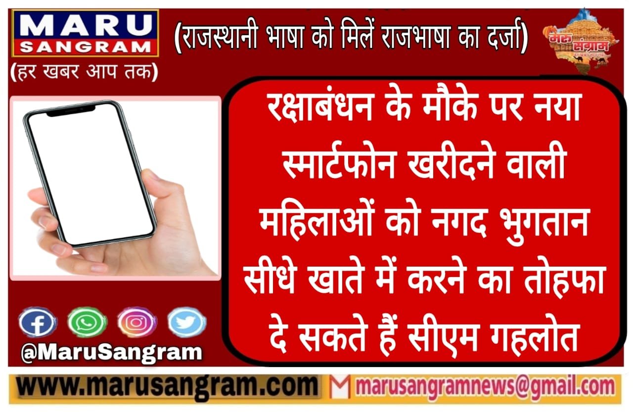 रक्षाबंधन के मौके पर नया स्मार्टफोन खरीदने वाली महिलाओं को नगद भुगतान सीधे खाते में करने का तोहफा दे सकते हैं सीएम गहलोत….