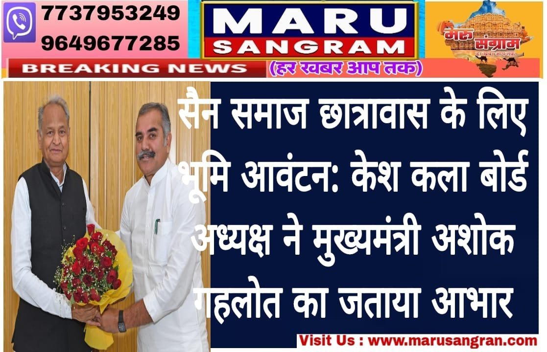 सैन समाज छात्रावास के लिए भूमि आवंटन: केश कला बोर्ड अध्यक्ष ने मुख्यमंत्री गहलोत का जताया आभार…..