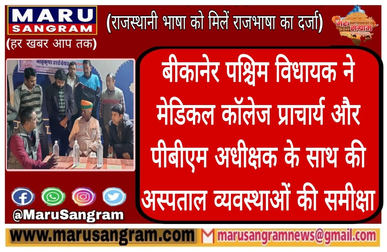 बीकानेर पश्चिम विधायक ने मेडिकल कॉलेज प्राचार्य और पीबीएम अधीक्षक के साथ की अस्पताल व्यवस्थाओं की समीक्षा….