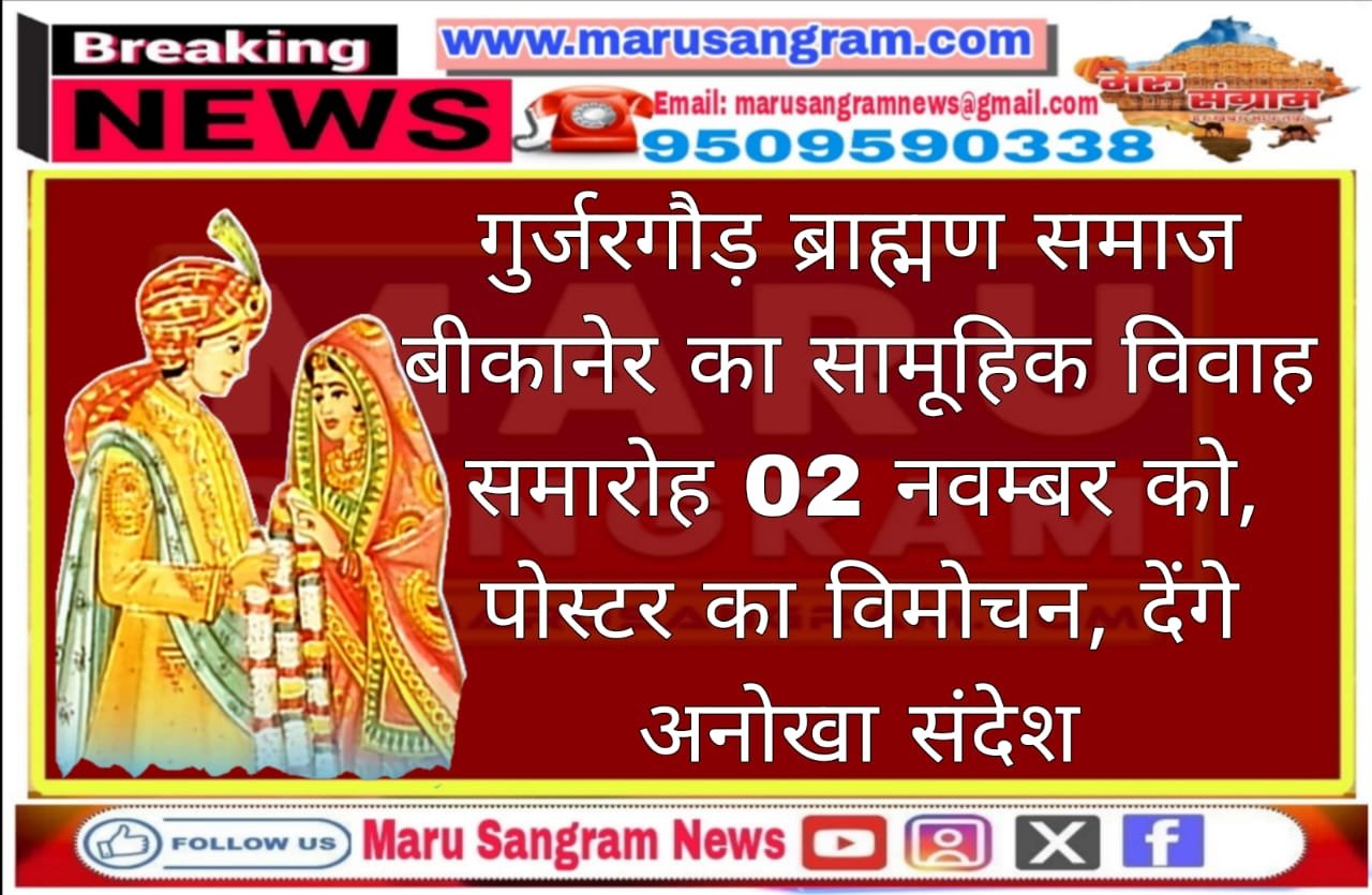 गुर्जरगौड़ ब्राह्मण समाज बीकानेर का सामूहिक विवाह समारोह 02 नवम्बर को, पोस्टर का विमोचन, देंगे अनोखा संदेश…..