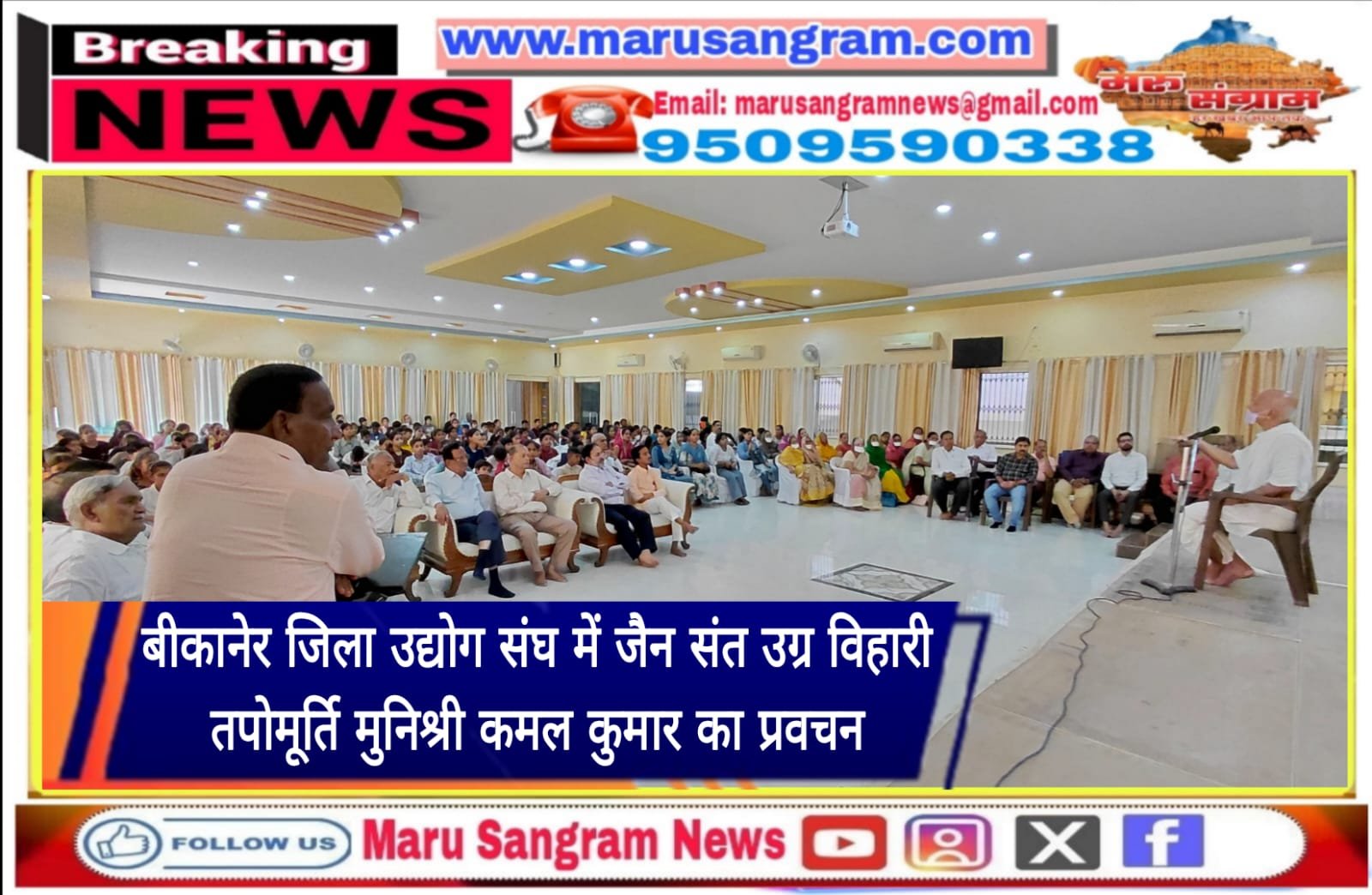 बीकानेर जिला उद्योग संघ में जैन संत उग्र विहारी तपोमूर्ति मुनिश्री कमल कुमार का प्रवचन…..