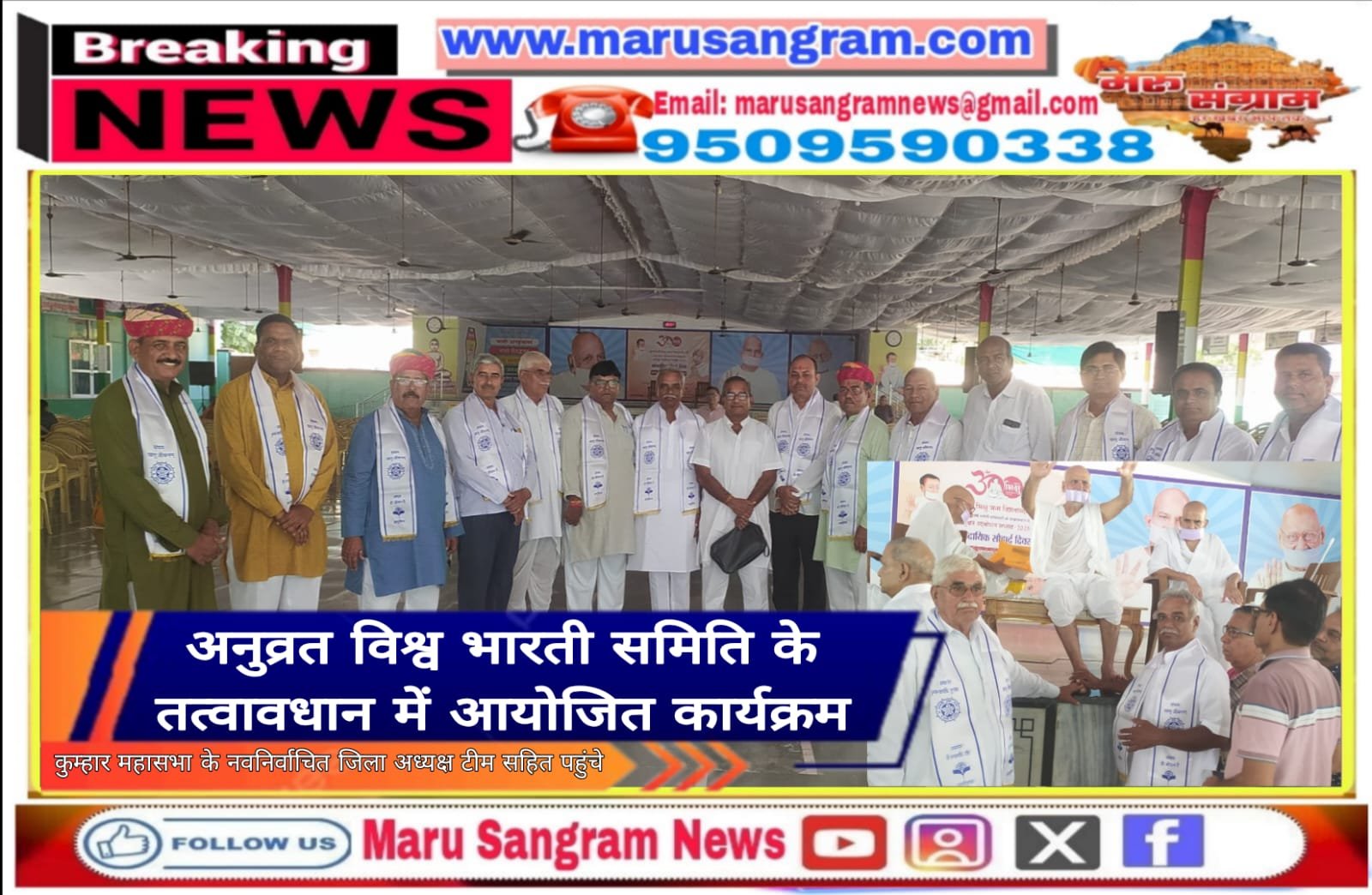 अनुव्रत विश्व भारती समिति के तत्वावधान में आयोजित कार्यक्रम में कुम्हार महासभा के नवनिर्वाचित जिला अध्यक्ष टीम सहित पहुंचे…..