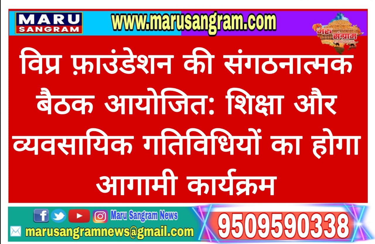 विप्र फ़ाउंडेशन की संगठनात्मक बैठक आयोजित: शिक्षा और व्यवसायिक गतिविधियों का होगा आगामी कार्यक्रम….