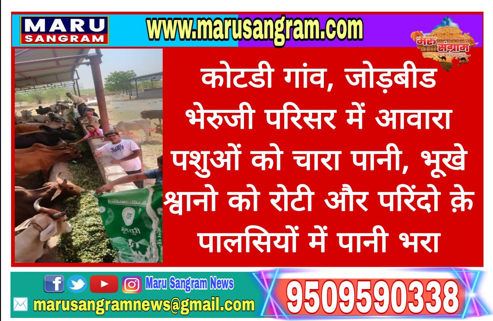 कोटडी गांव, जोड़बीड भेरुजी परिसर में आवारा पशुओं को चारा पानी, भूखे श्वानो को रोटी और परिंदो क़े पालसियों में पानी भरा…..
