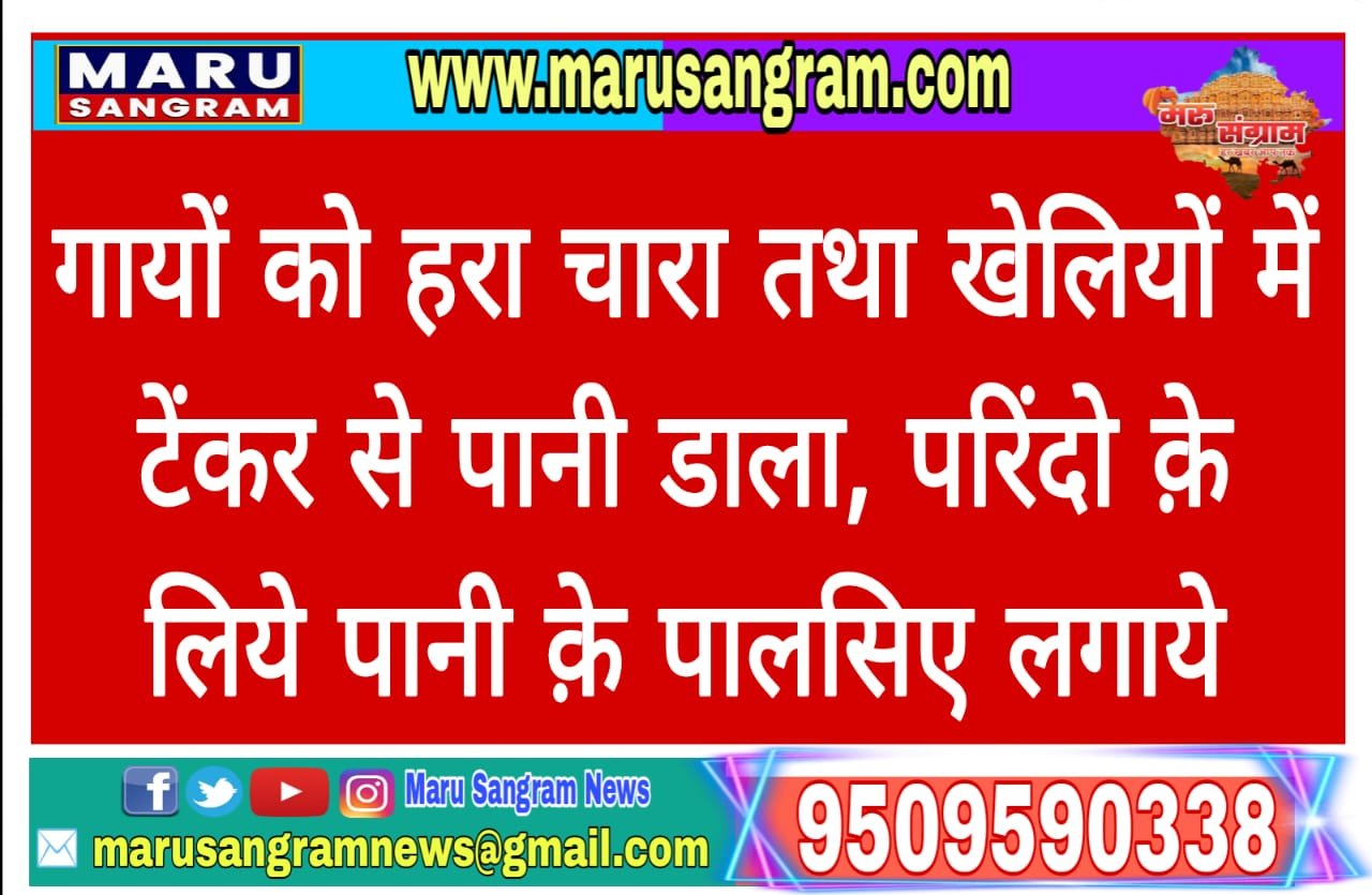 गायों को हरा चारा तथा खेलियों में टेंकर से पानी डाला, परिंदो क़े लिये पानी क़े पालसिए लगाये…..