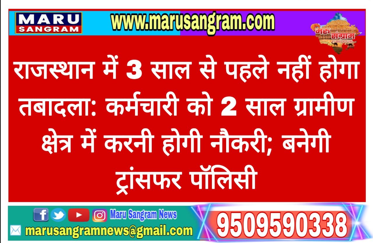 राजस्थान में 3 साल से पहले नहीं होगा तबादला: कर्मचारी को 2 साल ग्रामीण क्षेत्र में करनी होगी नौकरी; बनेगी ट्रांसफर पॉलिसी…..