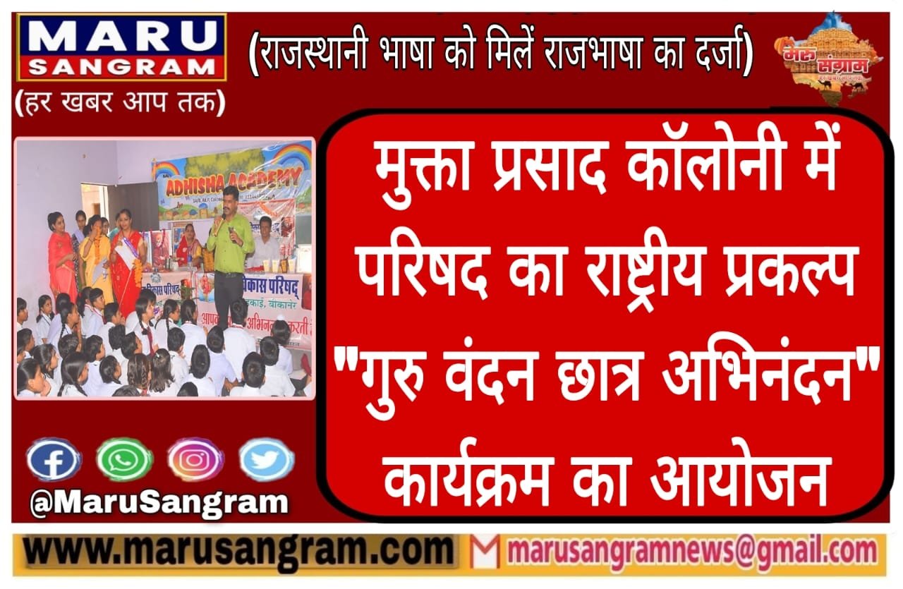 मुक्ता प्रसाद कॉलोनी में परिषद का राष्ट्रीय प्रकल्प “गुरु वंदन छात्र अभिनंदन” कार्यक्रम का आयोजन…..