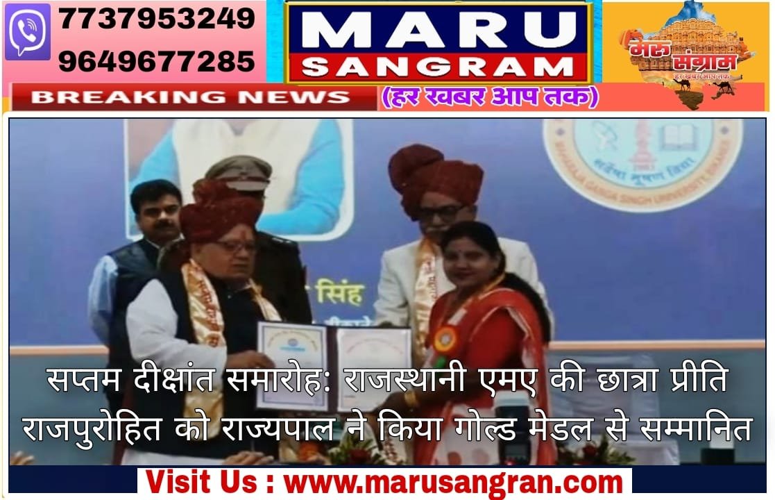 सप्तम दीक्षांत समारोह: राजस्थानी एमए की छात्रा प्रीति राजपुरोहित को राज्यपाल ने किया गोल्ड मेडल से सम्मानित….