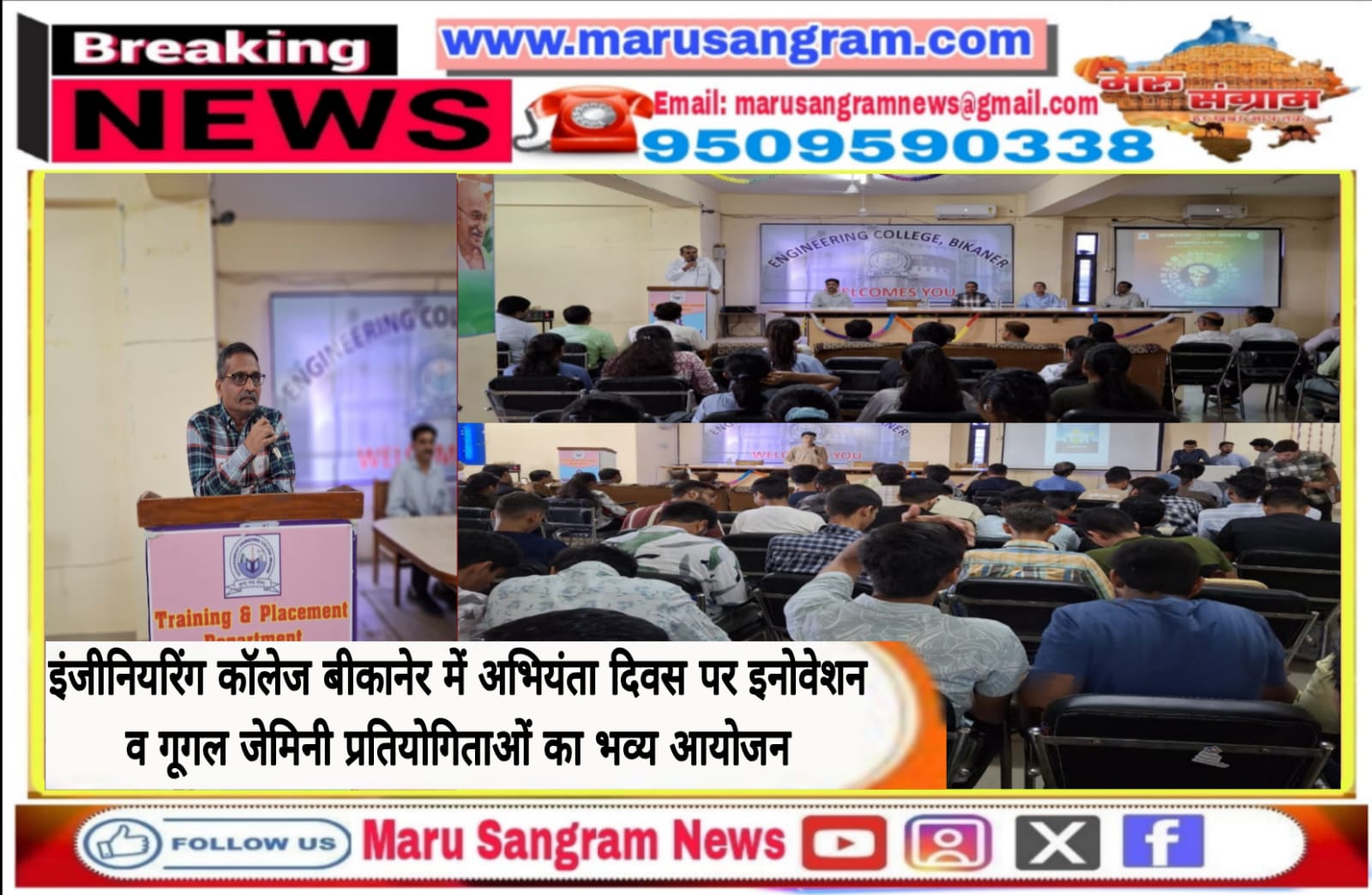 इंजीनियरिंग कॉलेज बीकानेर में अभियंता दिवस पर इनोवेशन व गूगल जेमिनी प्रतियोगिताओं का भव्य आयोजन…..