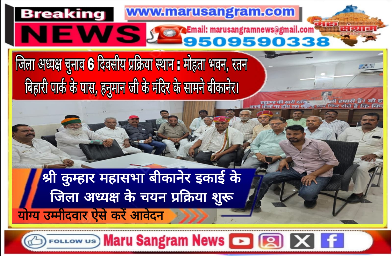 श्री कुम्हार महासभा बीकानेर इकाई के जिला अध्यक्ष के चयन प्रक्रिया शुरू, योग्य उम्मीदवार ऐसे करें आवेदन…..