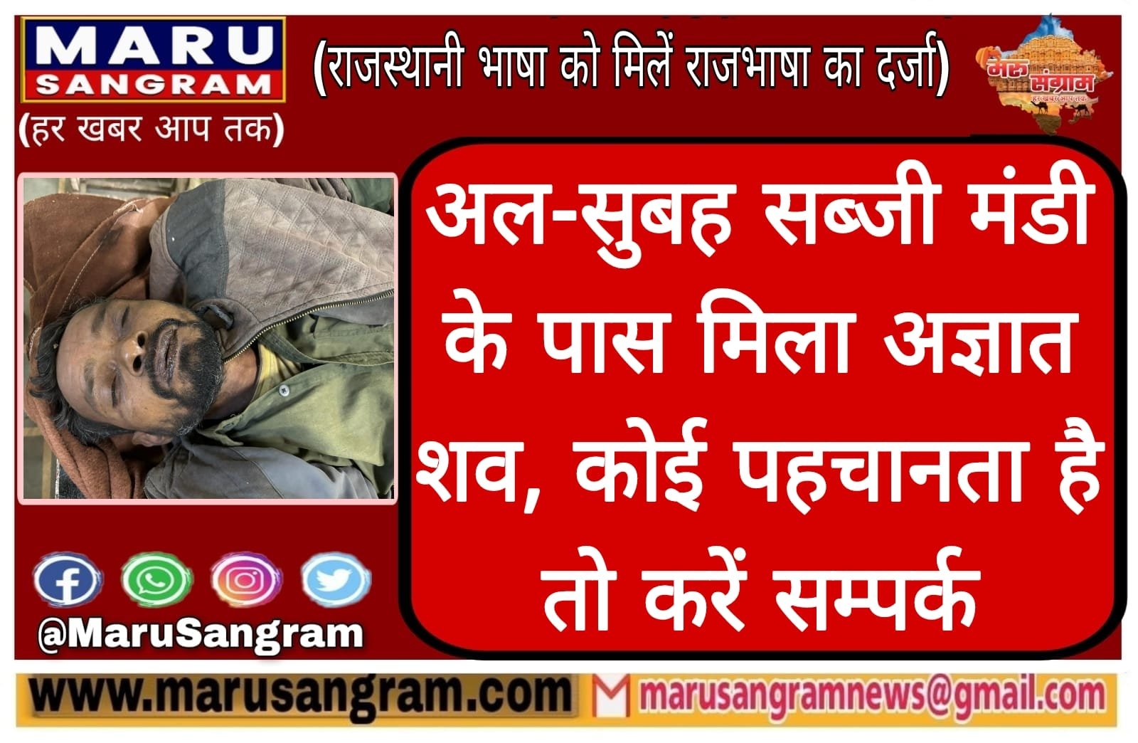 लालगढ़ वॉशिंग लाइन की ओर बने हॉल में एक अज्ञात मृत व्यक्ति का मिला शव, कोई पहचानता है तो….