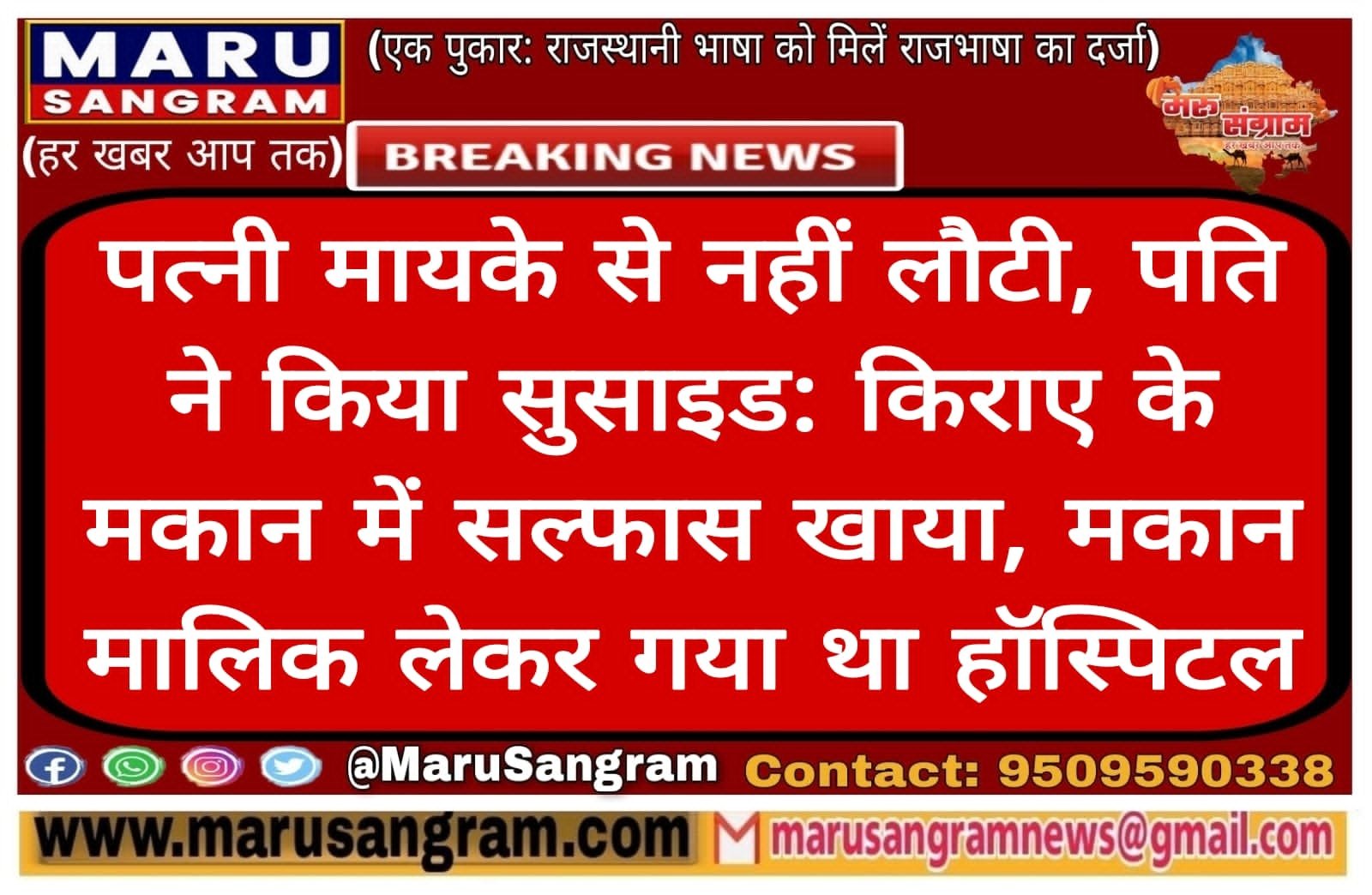 पत्नी मायके से नहीं लौटी, पति ने किया सुसाइड: किराए के मकान में सल्फास खाया, मकान मालिक लेकर गया था हॉस्पिटल….