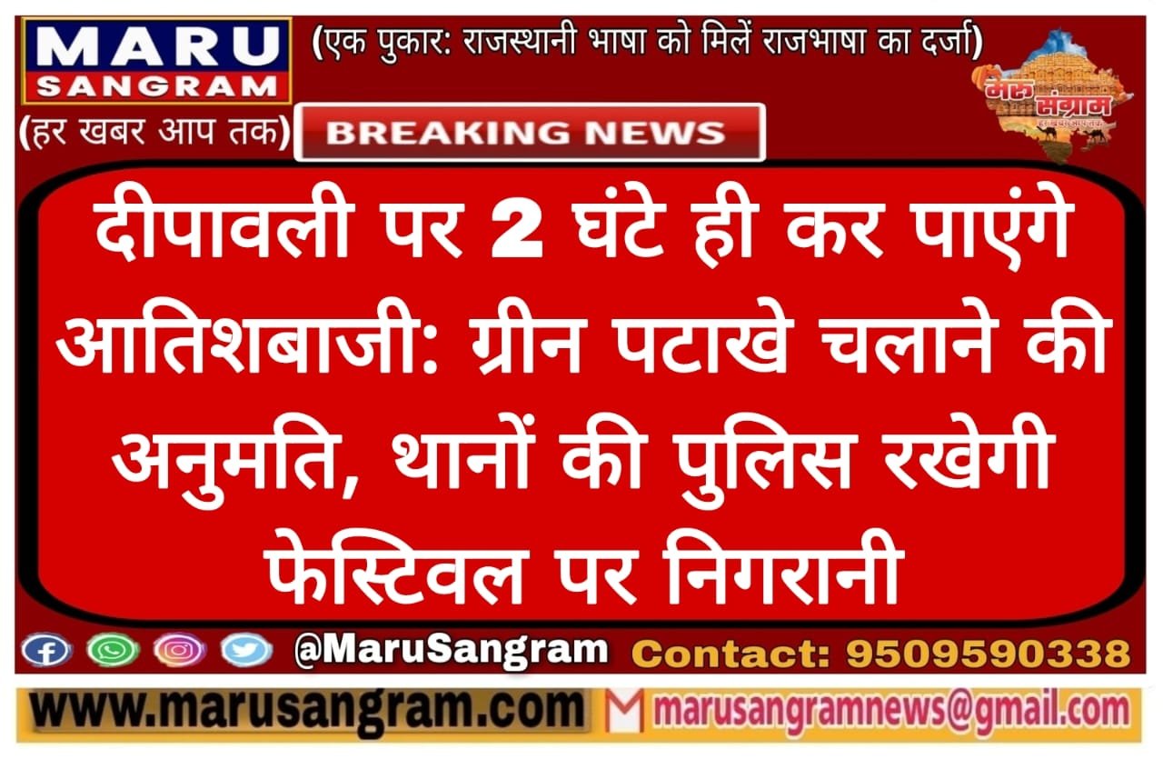 दीपावली पर 2 घंटे ही कर पाएंगे आतिशबाजी: ग्रीन पटाखे चलाने की अनुमति, थानों की पुलिस रखेगी फेस्टिवल पर निगरानी….