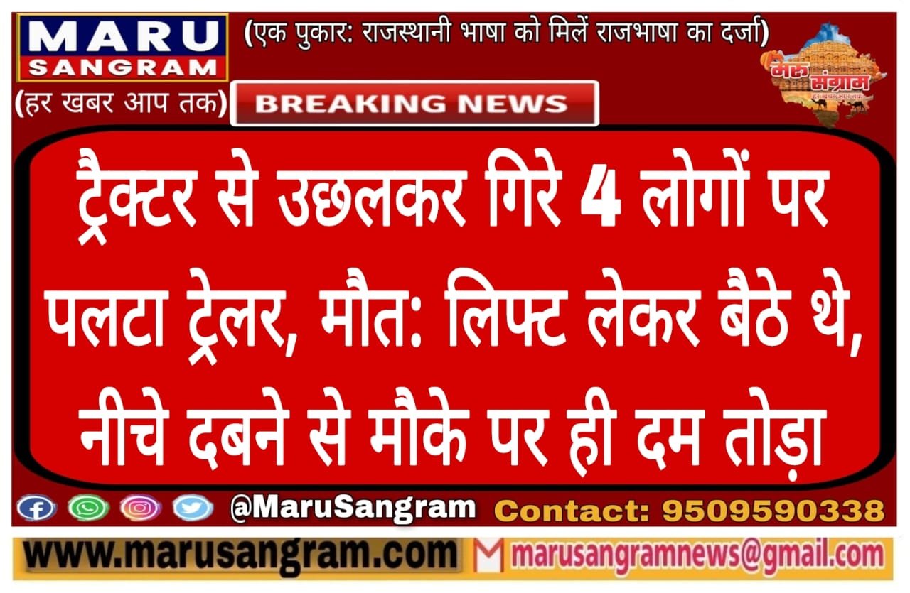 ट्रैक्टर से उछलकर गिरे 4 लोगों पर पलटा ट्रेलर, मौत: लिफ्ट लेकर बैठे थे, नीचे दबने से मौके पर ही दम तोड़ा…..