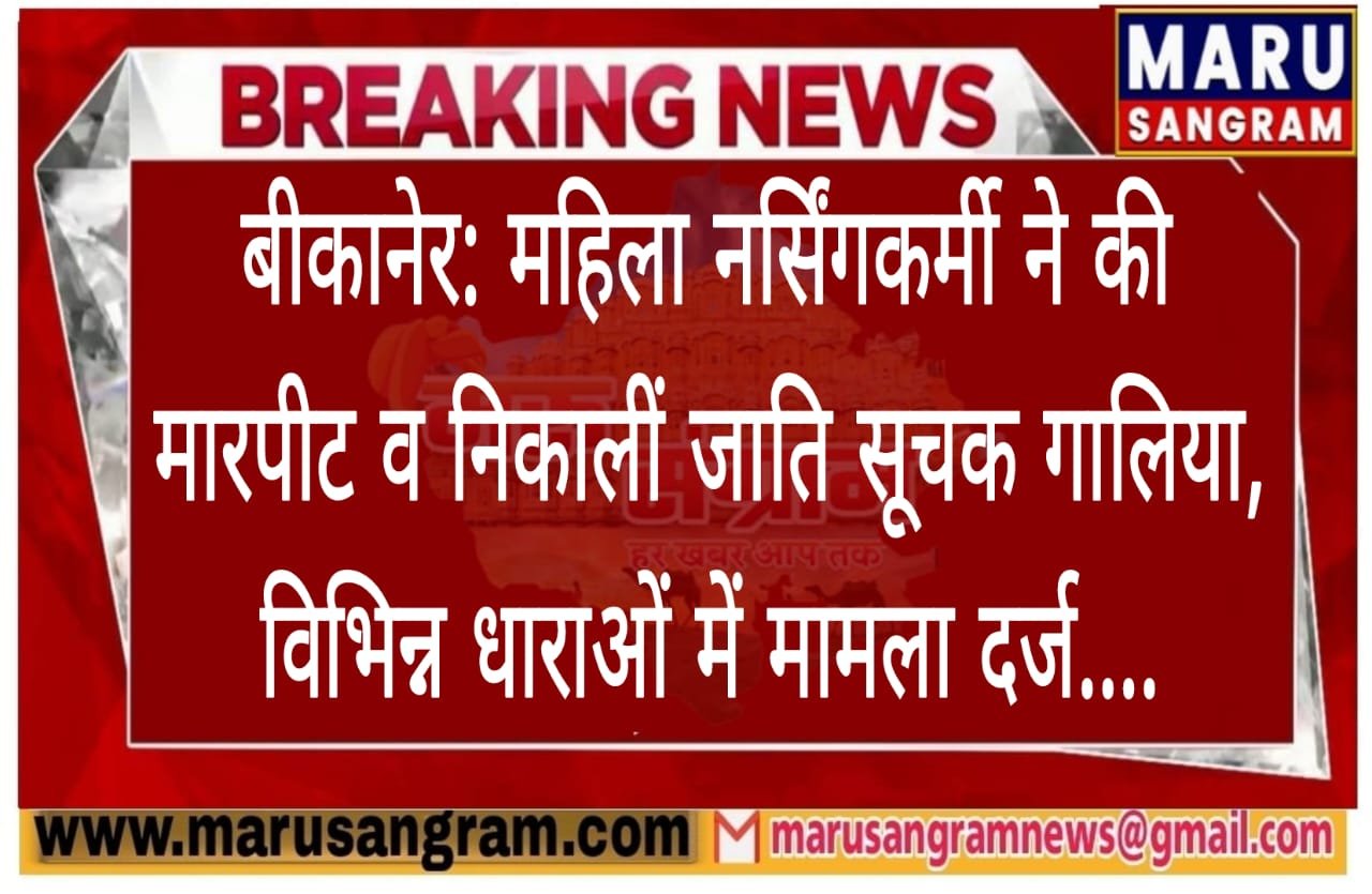 बीकानेर: महिला नर्सिंगकर्मी ने की मारपीट व निकालीं जाति सूचक गालिया, विभिन्न धाराओं में मामला दर्ज….