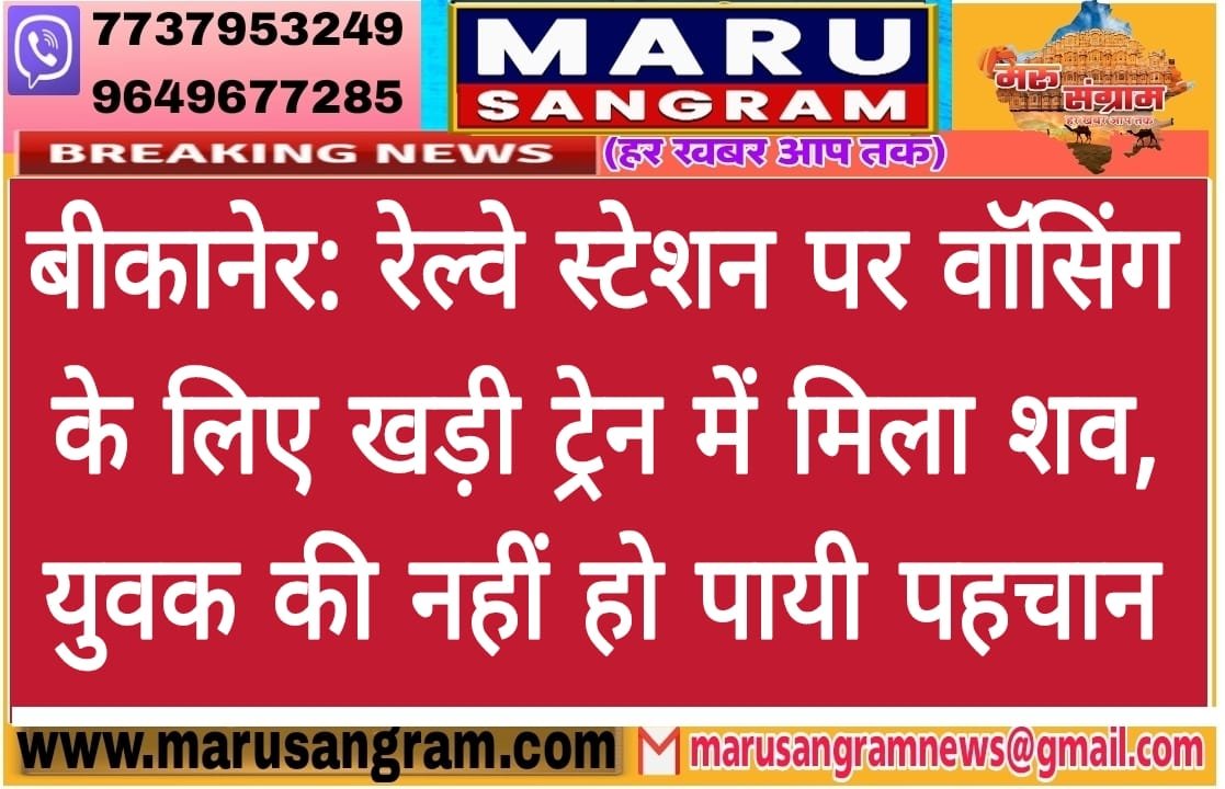 बीकानेर: रेल्वे स्टेशन पर वाॅसिंग के लिए खड़ी ट्रेन में मिला शव, युवक की नहीं हो पायी पहचान….